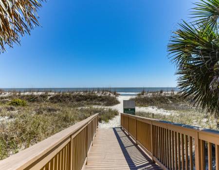 Captain's Walk's well-groomed grounds feature tropical landscaping, including palm trees. Also found on the grounds are a large swimming pool, which is heated in the cooler months, a kiddie pool, a large covered deck, and multiple sundecks. There are also community gas grills and a shaded pavilion, perfect for grilling out and enjoying a meal outdoors. To get to the beach, guests can take a boardwalk for a convenient stroll before getting their feet in the sand and enjoying the gentle ocean breeze.
