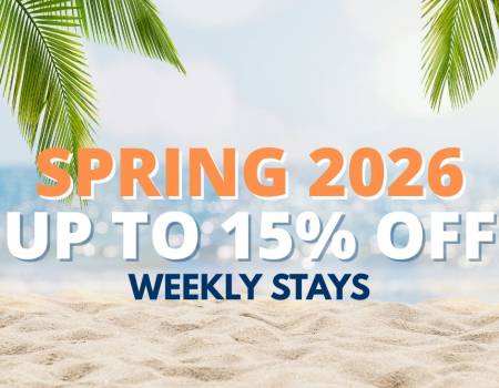 Thursday, January 1, 2026 to Saturday, May 23, 2026SAVE ON WEEKLY STAYS IN 2026: Stay January 1 - May 23, 2026 and take up to 15% off. Valid on 7 -21 day stays. Book your stay today!